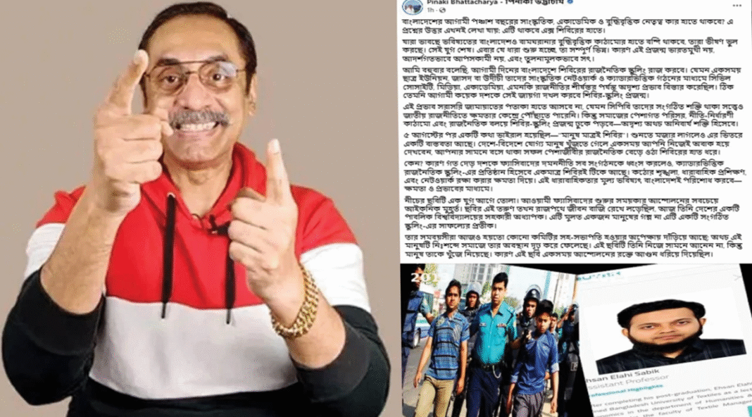 পোস্টে পিনাকী ভট্টাচার্য লেখেন, বাংলাদেশের আগামী পঞ্চাশ বছরের সাংস্কৃতিক, একাডেমিক ও বুদ্ধিবৃত্তিক নেতৃত্ব কার হাতে থাকবে? এ প্রশ্নের উত্তর এখনই লেখা যায়: এটি থাকবে এক্স শিবিরের হাতে। যারা ভাবছে ভবিষ্যতের বাংলাদেশও বামঘরানার বুদ্ধিবৃত্তিক কাঠামোর হাতে বন্দি থাকবে, তারা ভীষণ ভুল করছে। সেই যুগ শেষ। এবার যে ধারা শুরু হচ্ছে, তা সম্পূর্ণ ভিন্ন। কারণ এই প্রজন্ম ভারতমুখী নয়, আদর্শগতভাবে আপসকামী নয়, এবং তুলনামূলকভাবে সৎ।